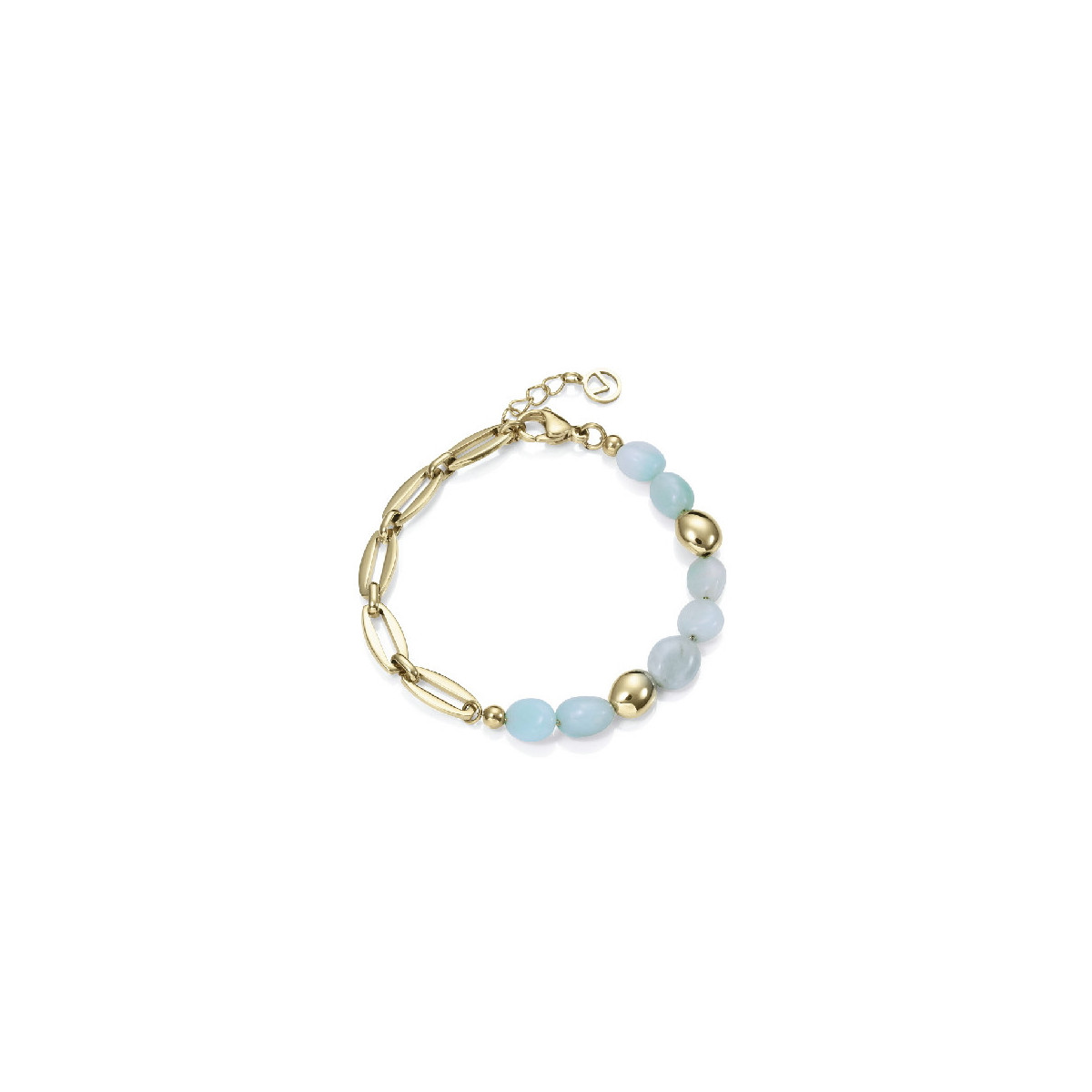 Pulsera para mujer VICEROY FASHION. Fabricado en acero inoxidable. Acabado color dorado. Piedras naturales verde agua. Cierre mosquetón. Medida 18/20 cm. Se presenta en estuche y bolsa.