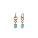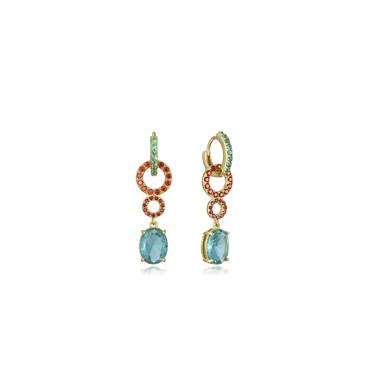Pendientes para mujer. Con un diseño que captura la atención, estos pendientes de aro, elaborados en plata de ley con un exquisito baño de oro, presentan una combinación vibrante de circonitas en tonos verde y rojo. El colgante de cristal turquesa añade un punto focal de color intenso y claridad, creando un contraste hermoso y llamativo. Lúcelos y marca tendencia con Viceroy.Personalización del producto