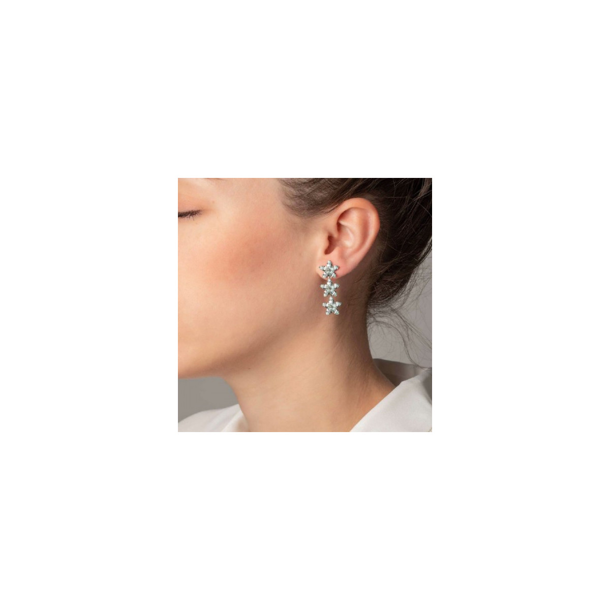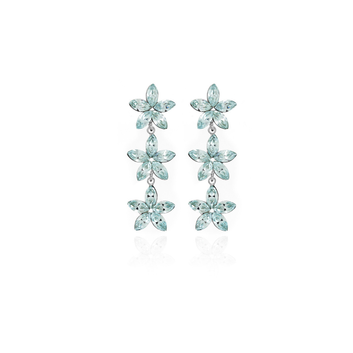 Pendientes para mujer. Precioso diseño de flores en largo donde destacan los cristales SWAROVSKI en tonos azules. Ideal para eventos.