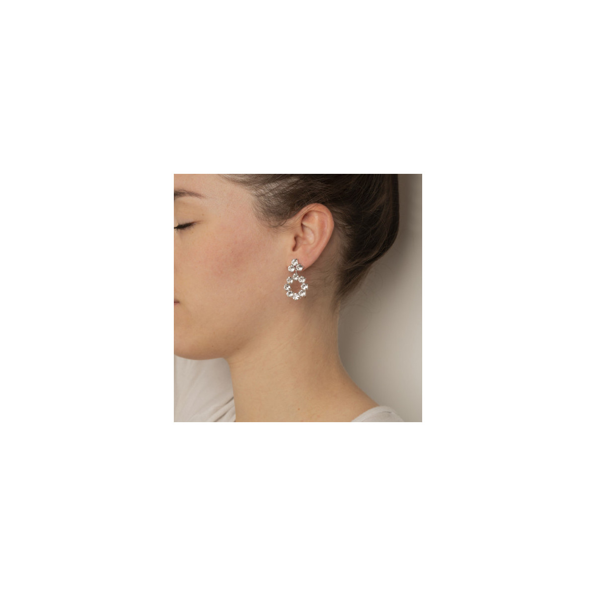 Pendientes para mujer VICTORIA CRUZ. Fabricados en plata de ley 925 mm. Acabado brillo rodio. Piedras cristales Swarovski. Cierre presión. Tamaño de ancho 20 mm y de alto 30 mm. POR RAZONES DE HIGIENE NO SE PODRÁN CAMBIAR POR OTRO ARTICULO.
