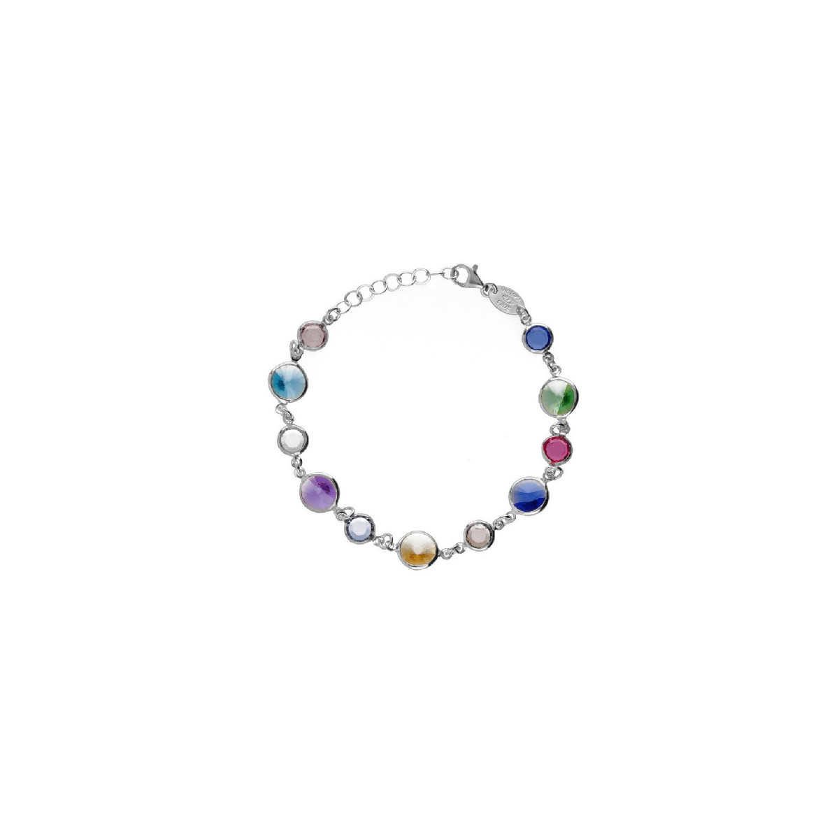 Pulsera para mujer VICTORIA CRUZ.. Fabricada en plata de ley 925 mm. Acabado brillo rodio. Piedras cristales de colores. Tamaño de los cristale 6 y 8 mm. Cierre mosquetón. Medida 18/20 cm. Certificado de garantía y de claidad. Se presenta en estuche y bolsa.