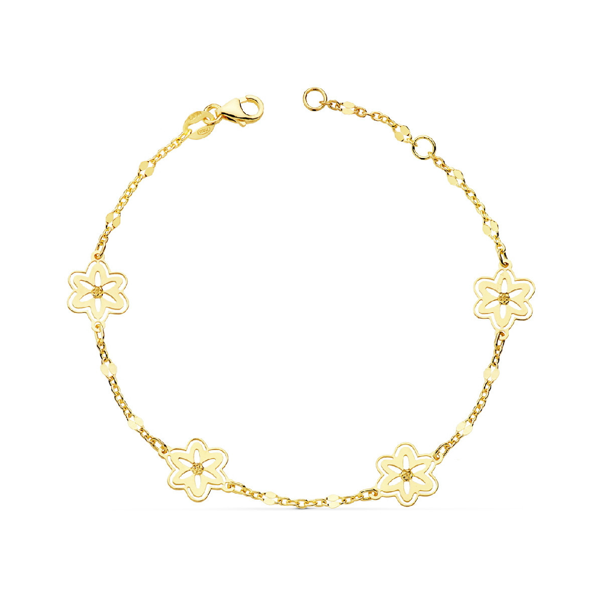 Pulsera Niña Oro 18 ktes Maciza Flores Comunión 16/18 cm - 000150829