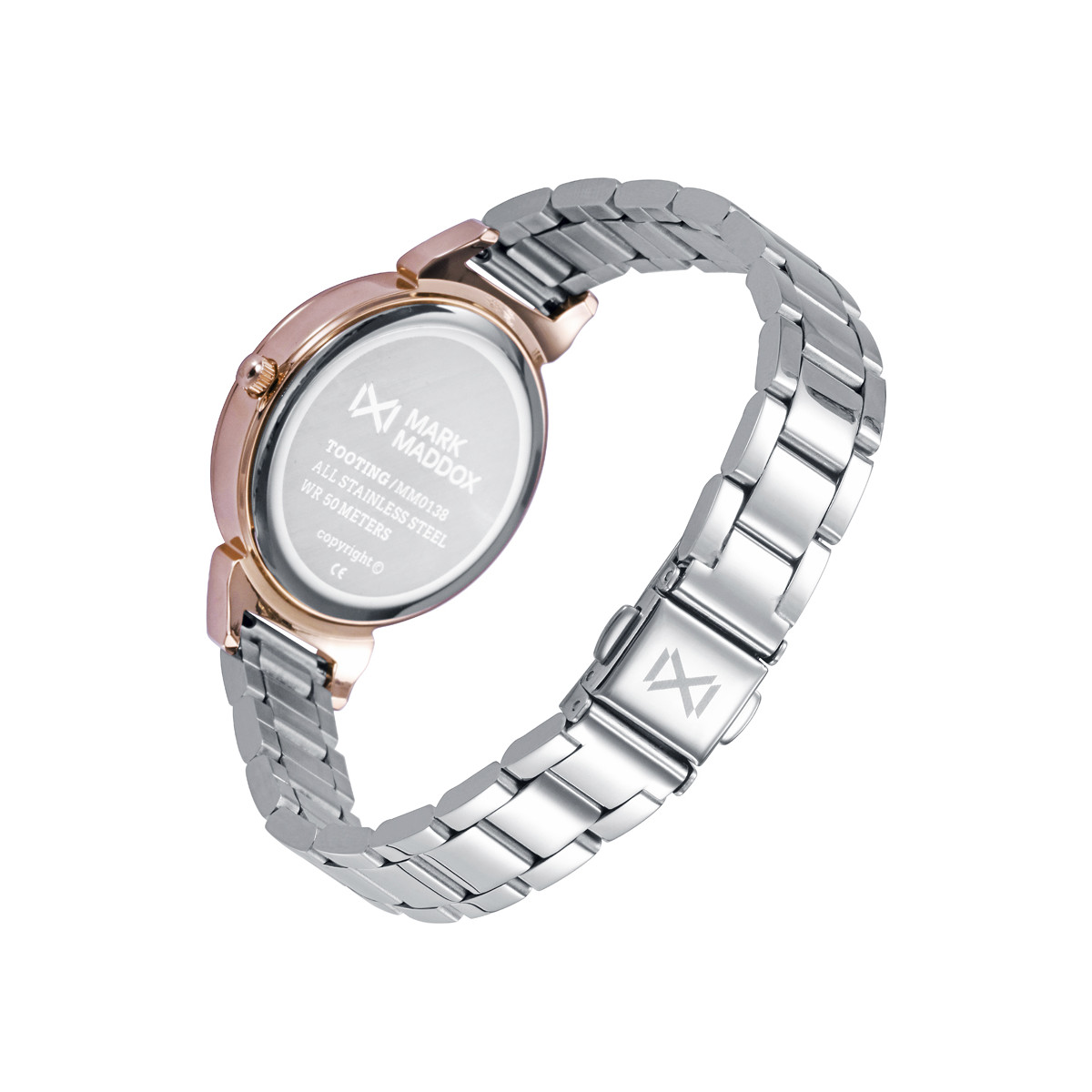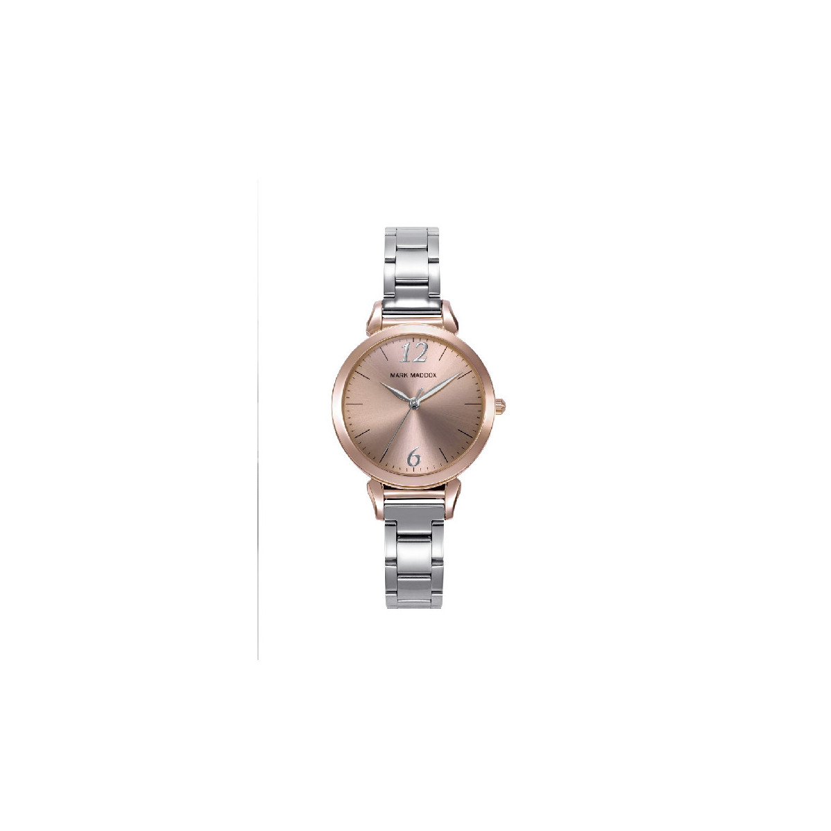 Reloj para mujer MARK MADDOX. Cuarzo analógico tres agujas. Caja acero IP rosé. Brazalete acero. Esfera color nude. Tamaño 32 mm. Resistente al agua 50 m. Garantía del fabricante 3 años. Se presenta en estuche y bolsa.